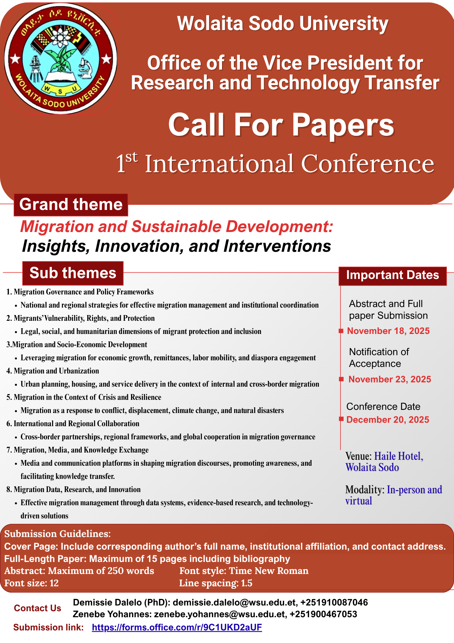 Call for Papers: 1st International Conference on Migration and Sustainable Development