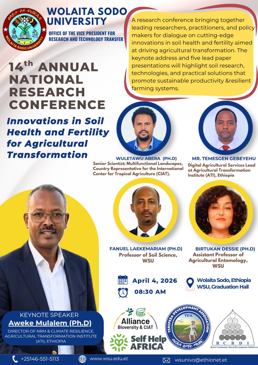 Wolaita Sodo University hosts the 14th Annual National Research Conference on April 04, 2026. Office of the Vice President for Research and Technology Transfer is glad to invite you to the conference.